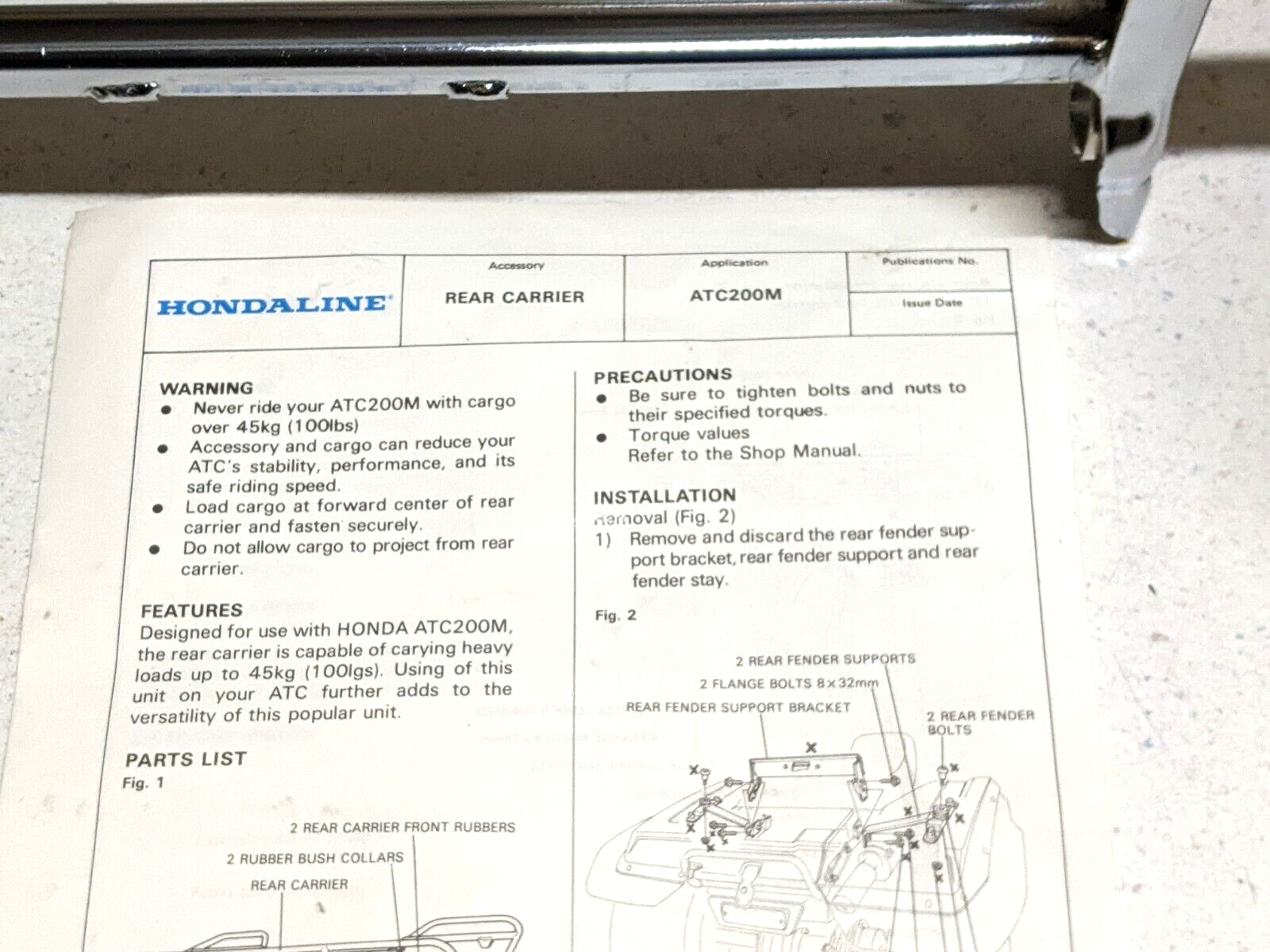 Nos Chrome Rack Carrier Fits Honda 84-85 ATC200M ATC200E ATC200ES ATC 200M/200E/200ES