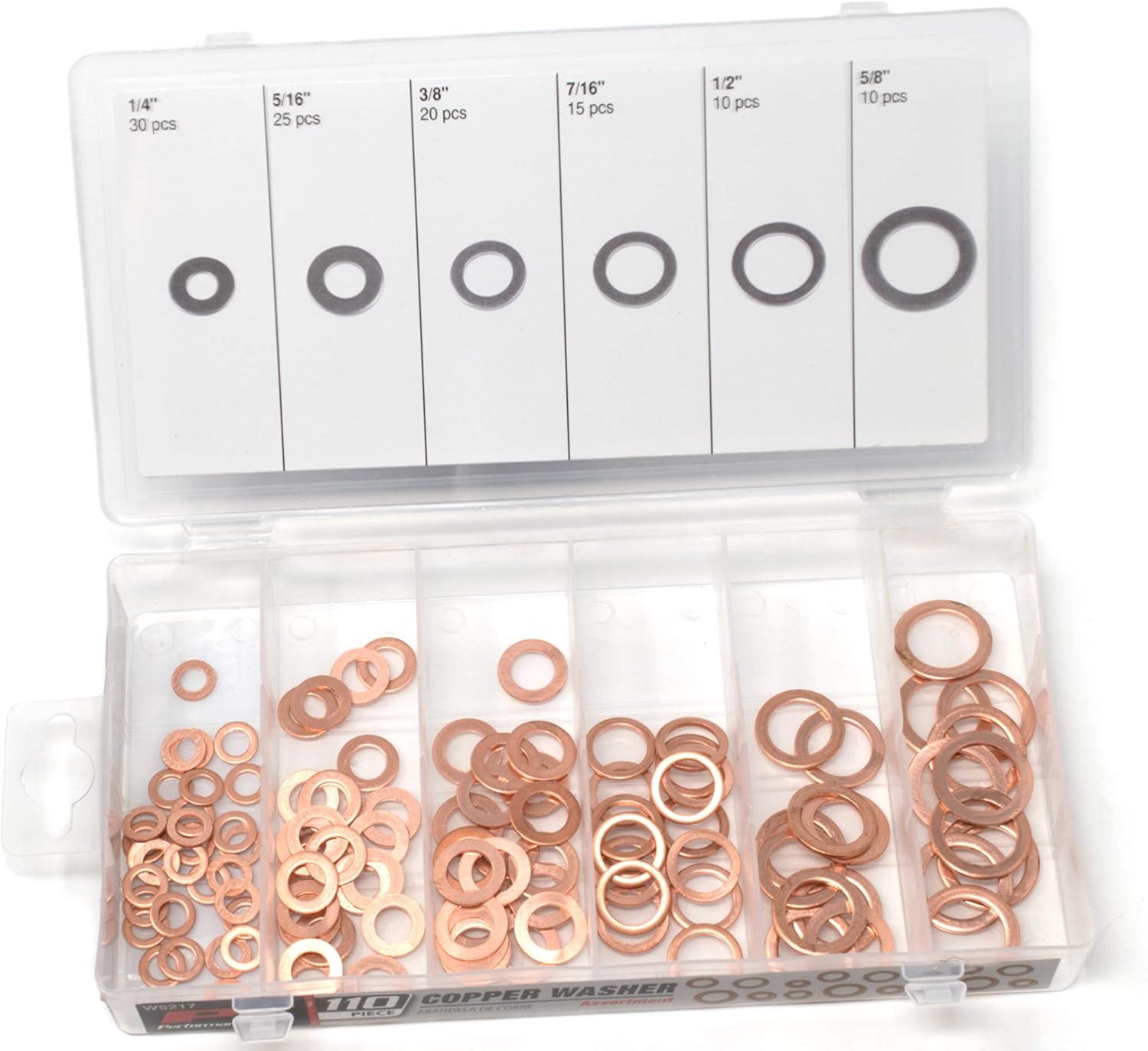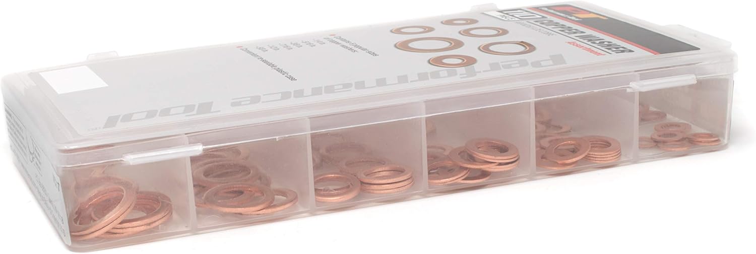 - Contains 110 Piece Copper Crush Washer Assortment