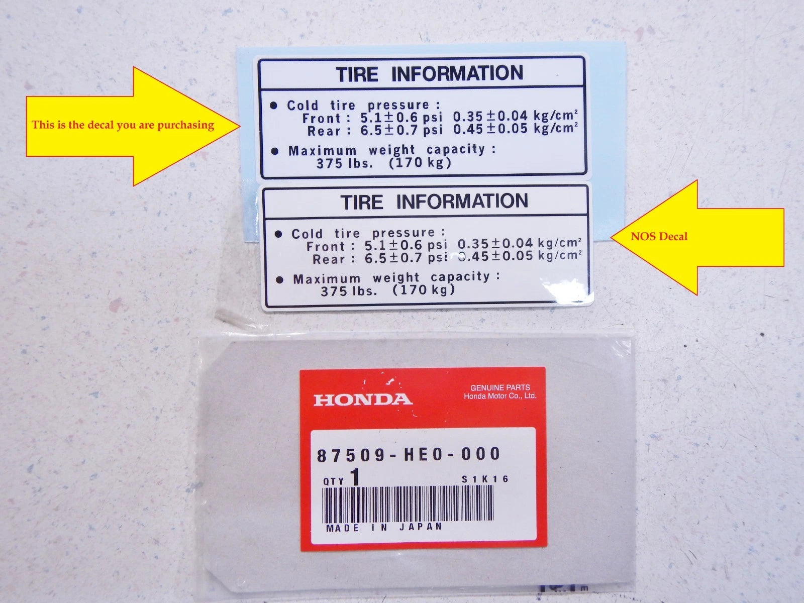 Tire Information Mark Sticker Decal Fits 89-90 Honda FL400R FL400 FL 400 400R Pilot